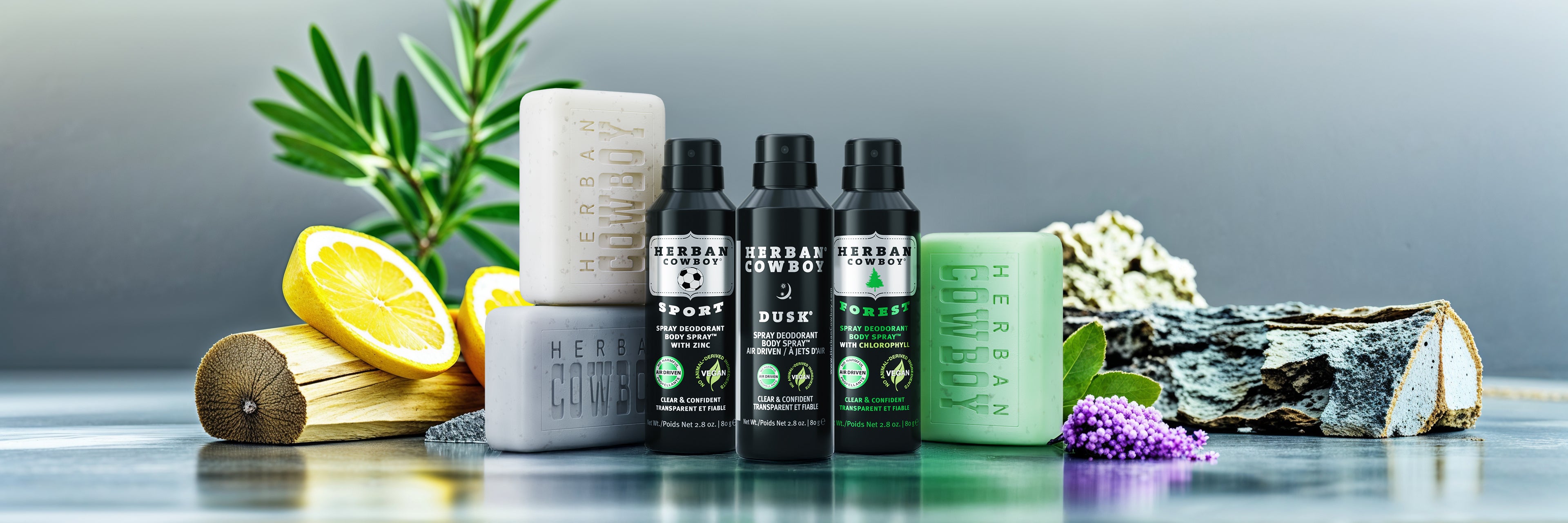 Spray Deodorant: Alcohol Denat., Water (Aqua), Ethylhexylglycerin, Aloe Barbadensis Leaf Juice, Salvia Officinalis (Sage) Leaf Extract, Rosmarinus Officinalis (Rosemary) Leaf Extract, Carum Petroselinum (Parsley) Leaf Extract, Zinc, Bisabolol, Allantoin, Sodium Hydroxide, Polysorbate 20, Fragrance